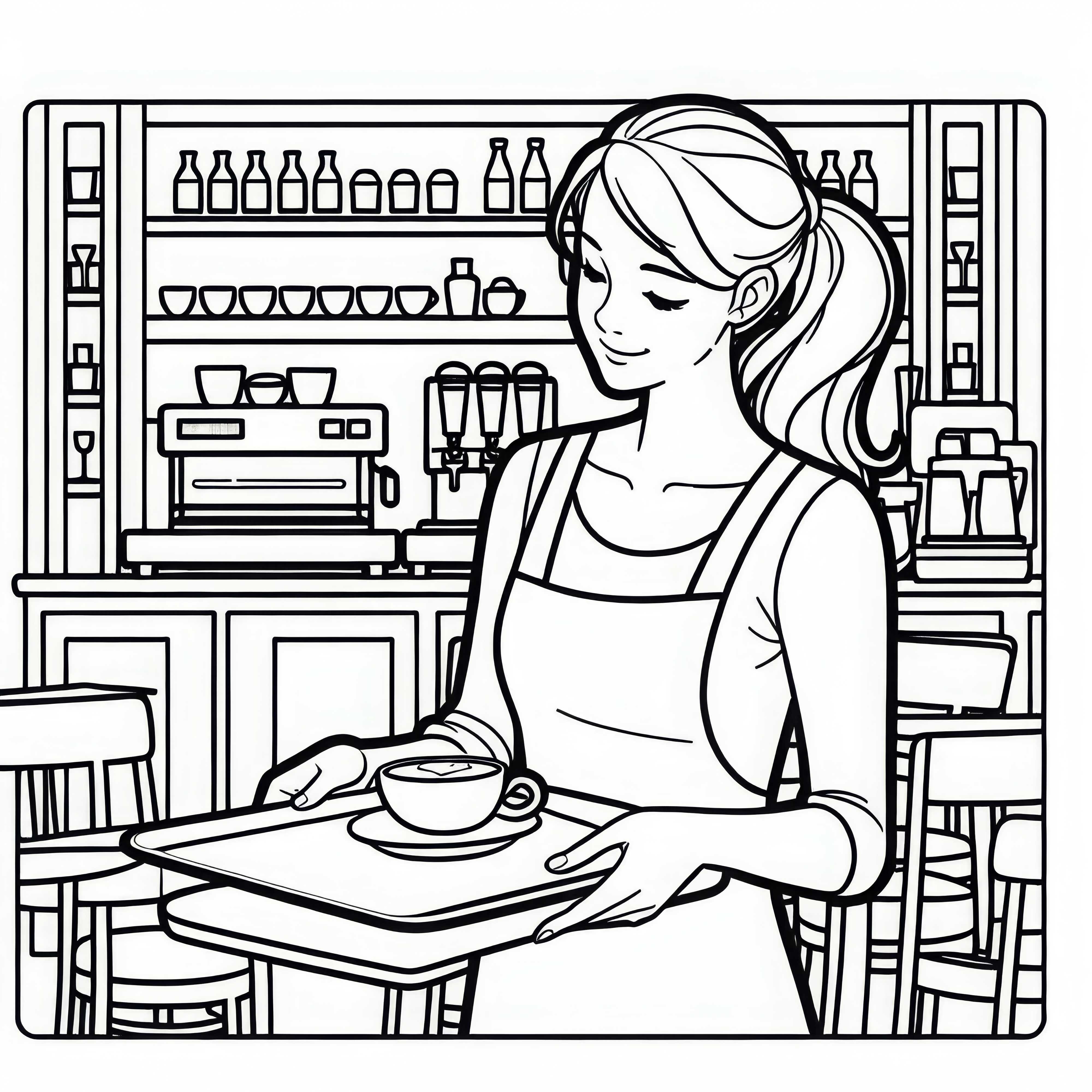 Раскраска с обслуживанием в ресторане - Бесплатное предложение для скачивания