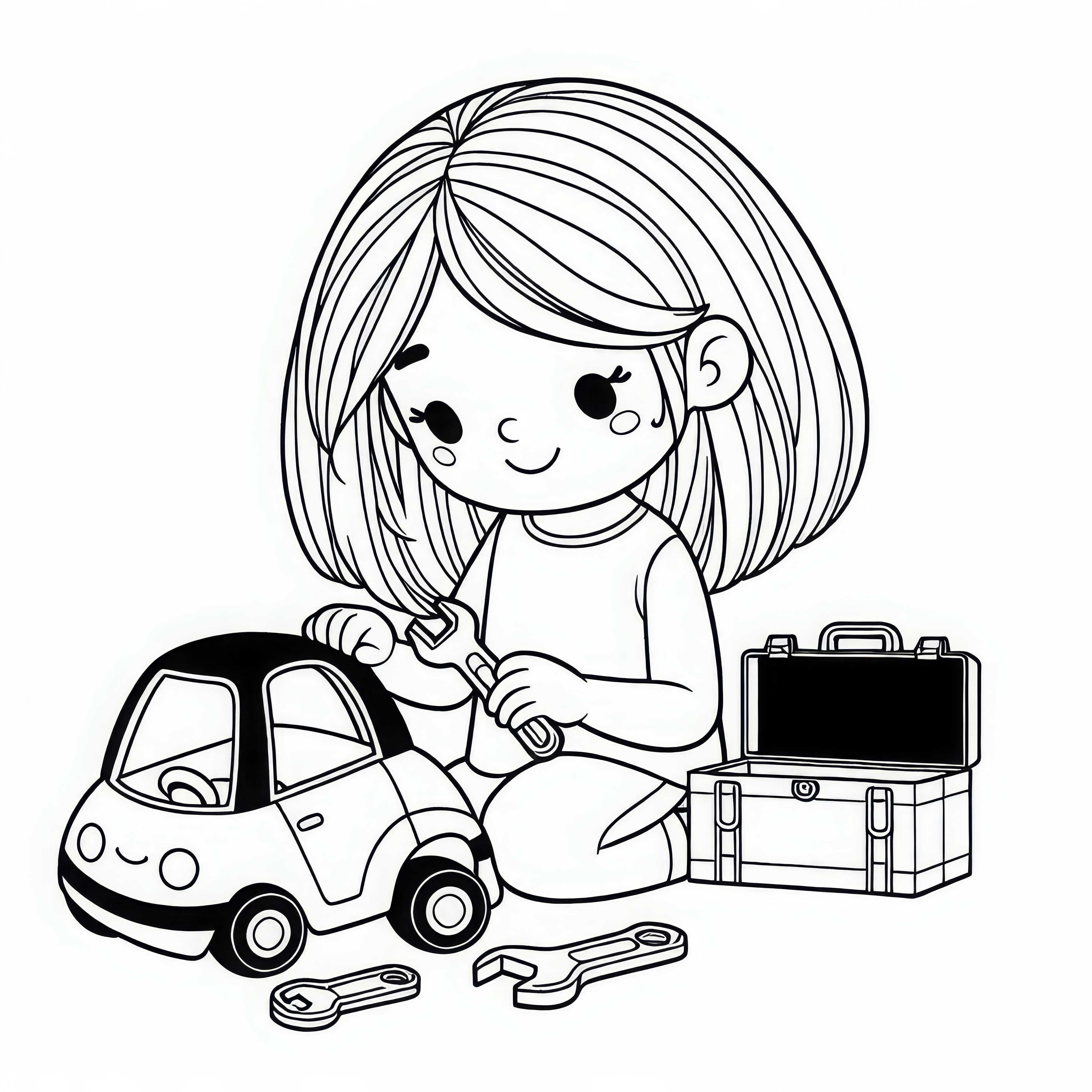Игрушечная полицейская машина гонится за маленьким игрушечным вором – Раскраска доступна для бесплатной загрузки