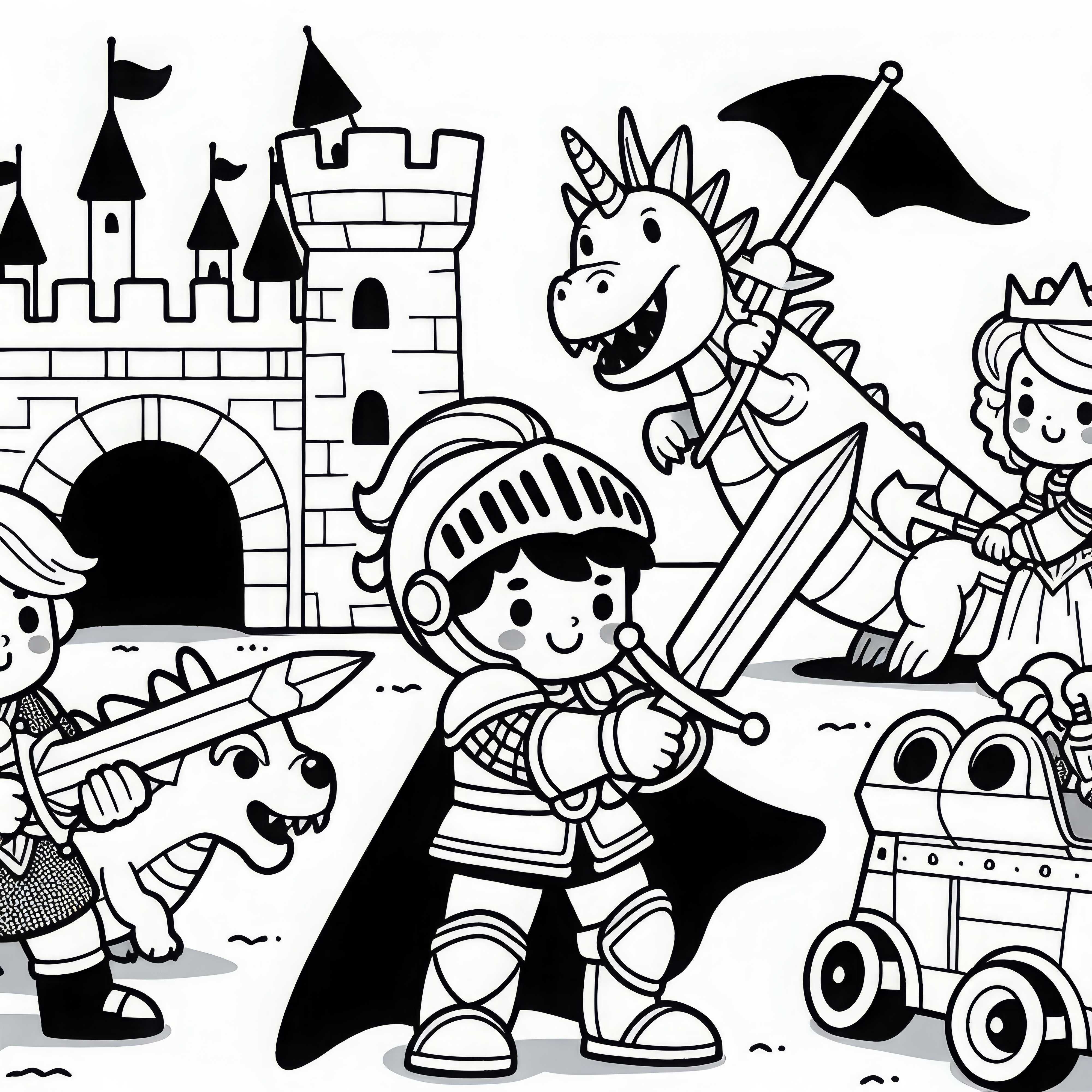 Ребёнок играет в королеву и посещает рыцарский замок во время чаепития – бесплатная раскраска