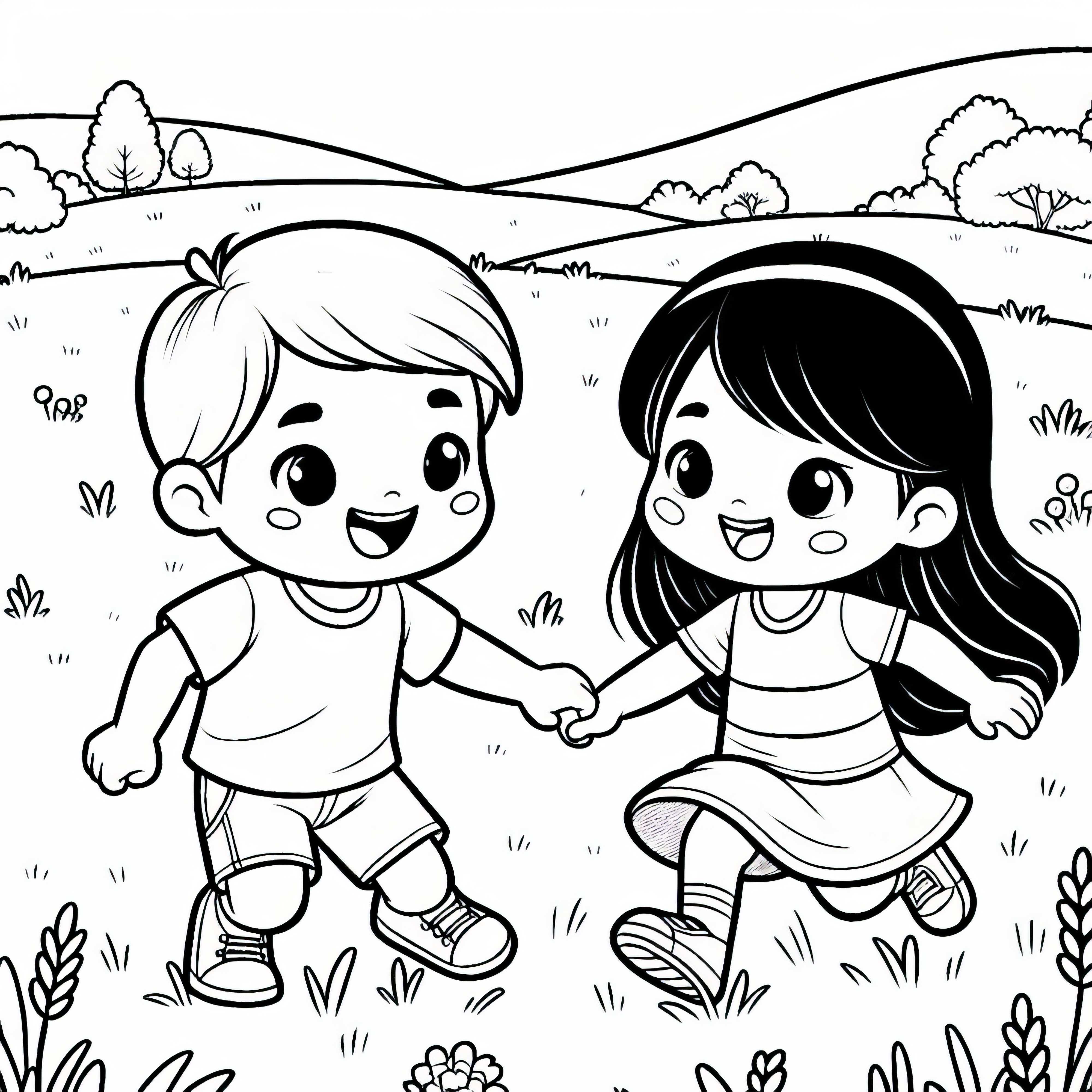 Дети играют в прятки за деревьями и кустами – Бесплатная раскраска