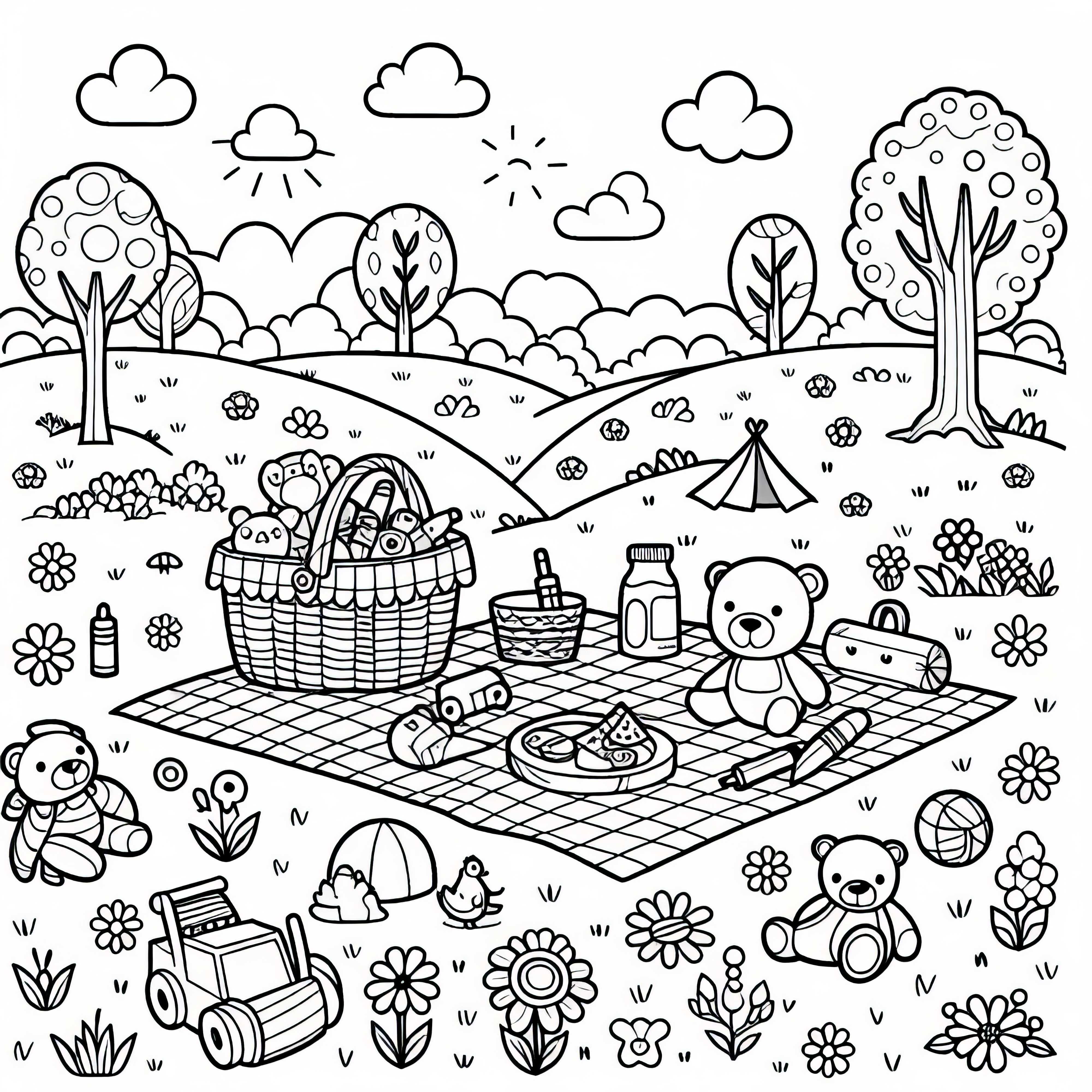Дети играют в прятки за деревьями и кустами – Бесплатная раскраска
