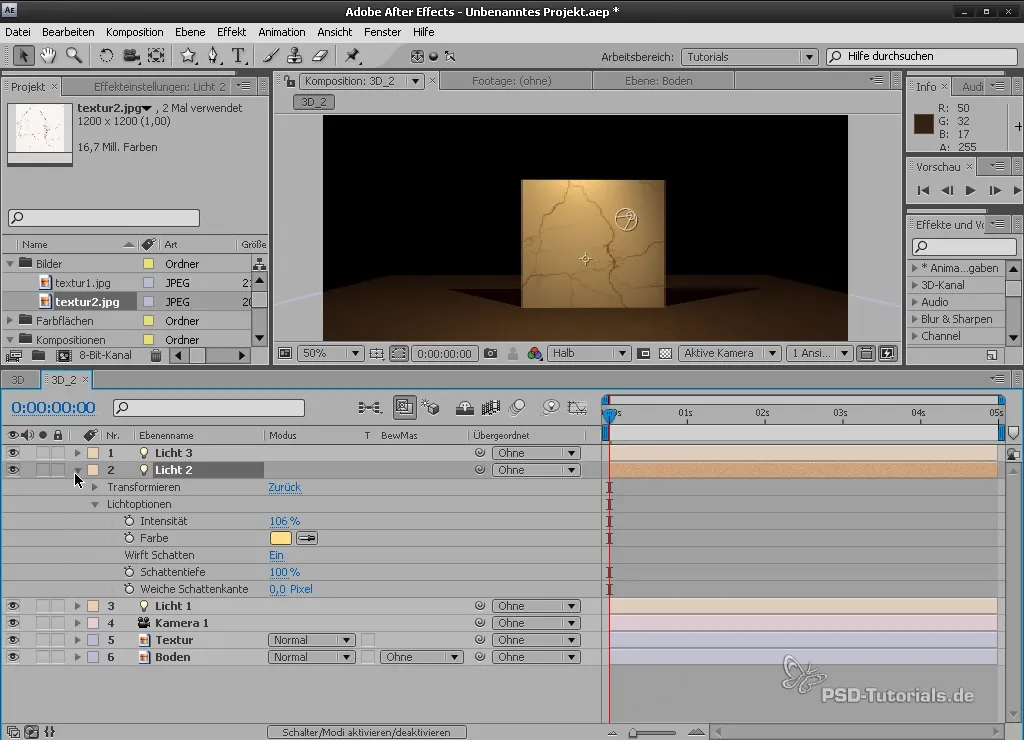 Каждый слой имеет специфические параметры материалов. Откройте параметры материалов и активируйте функцию теней, чтобы добиться реалистичных световых взаимодействий. Проверьте также настройки передачи света, чтобы увидеть, как текстуры реагируют на ваше освещение.