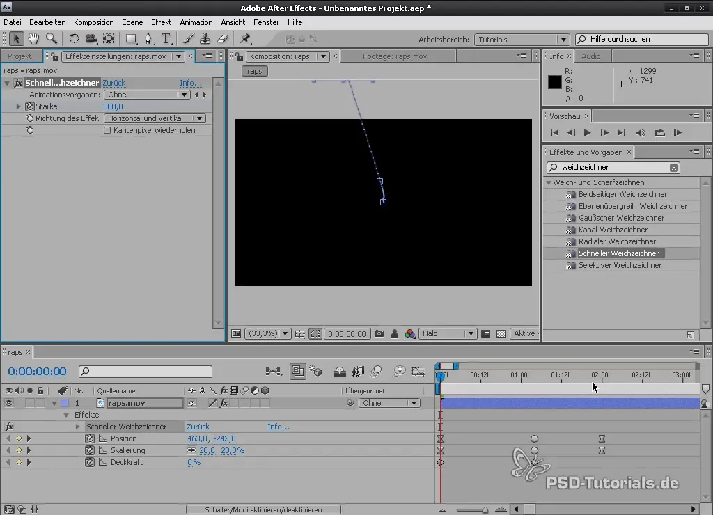 Здесь вы можете настроить параметры эффекта. У вас есть возможность регулировать силу размытия и увидеть эти изменения в превью.