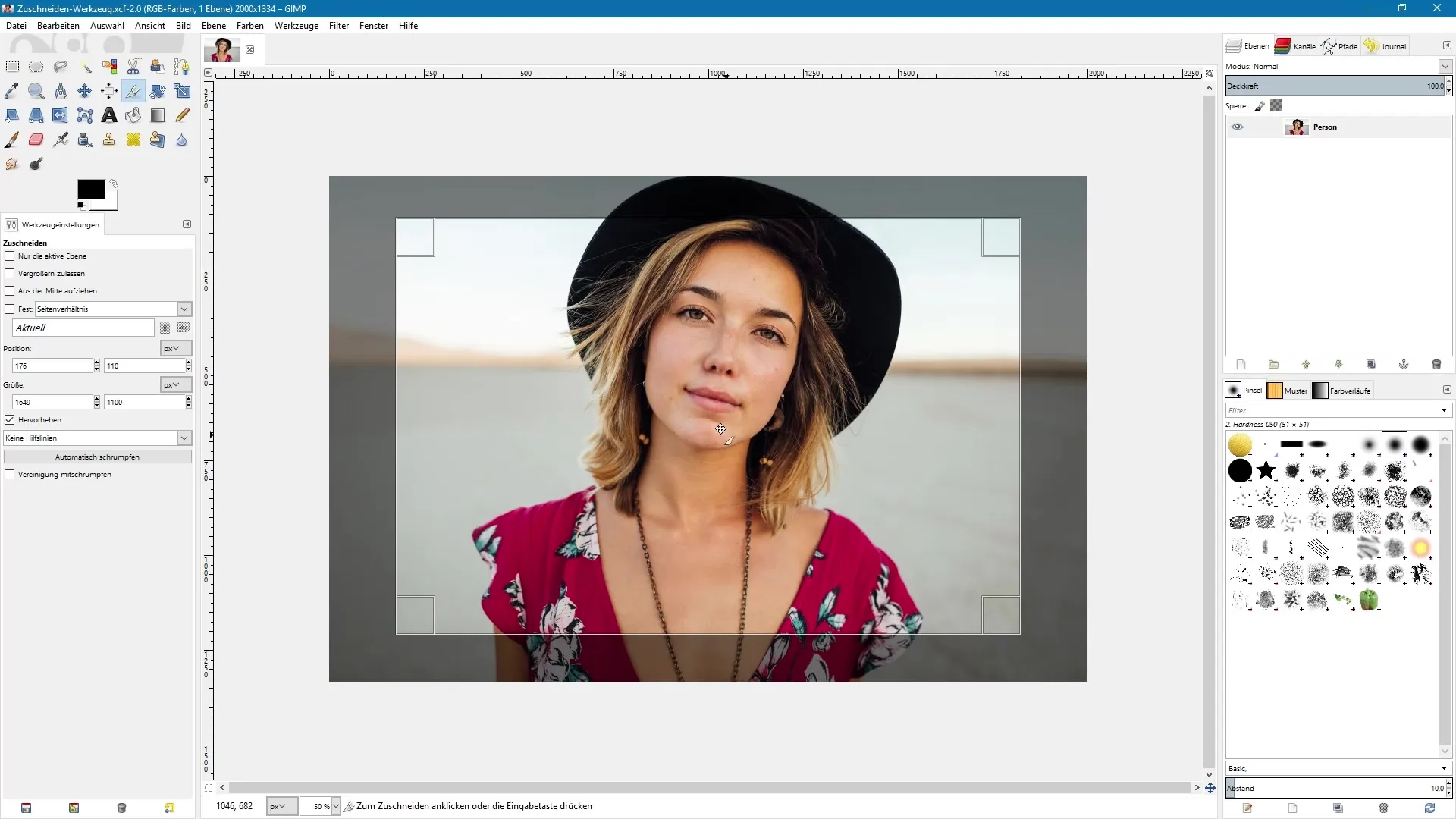 Чтобы запустить инструмент обрезки, кликни по соответствующей иконке на панели инструментов или используй сочетание клавиш Shift + C. Это откроет инструмент обрезки и позволит тебе сразу начать обрезку.