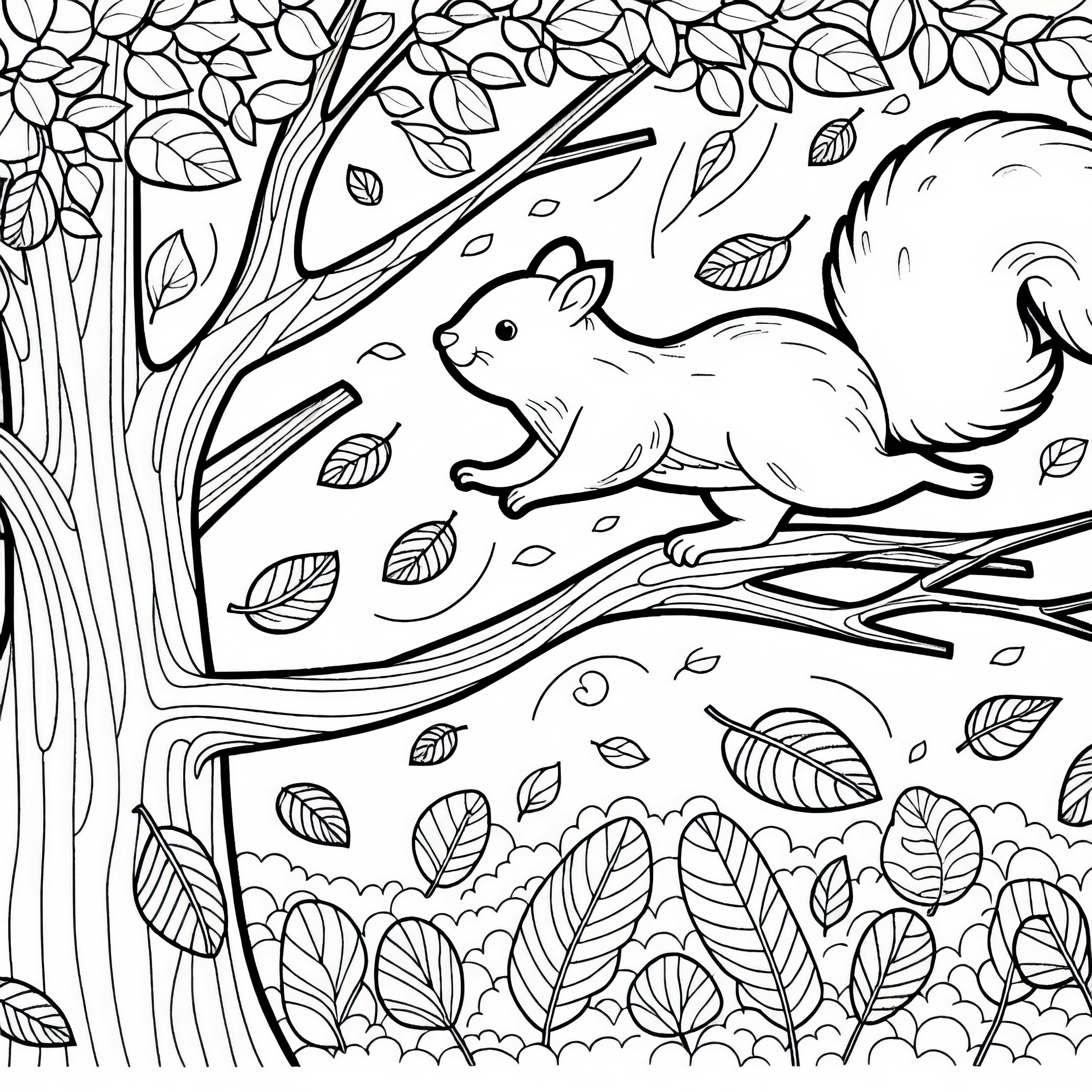 Dve veveričky sa hrajú v jesenných lístkoch – Omalovánka zadarmo
