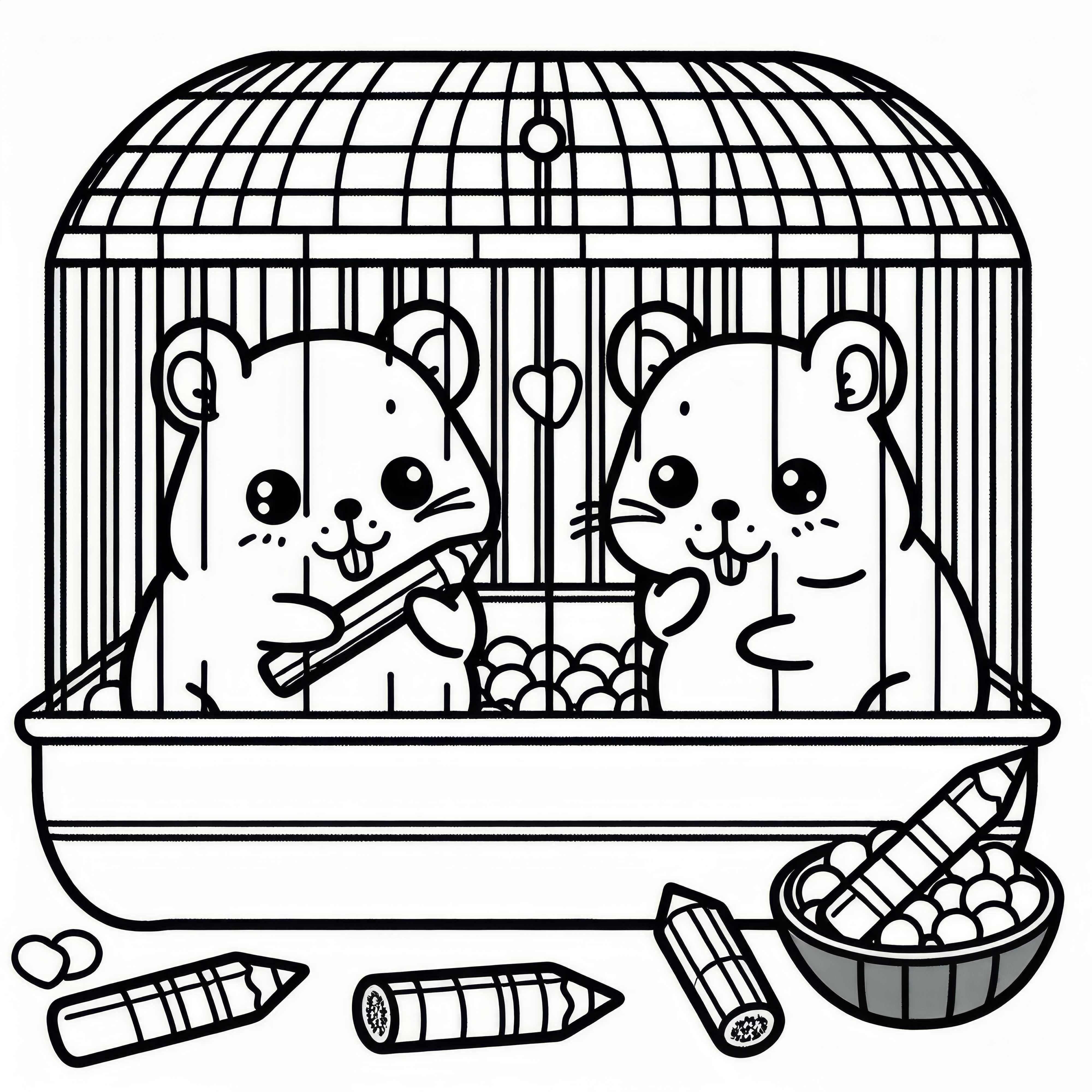 Hamster pozerá z búdy – Bezplatná predloha na maľovanie