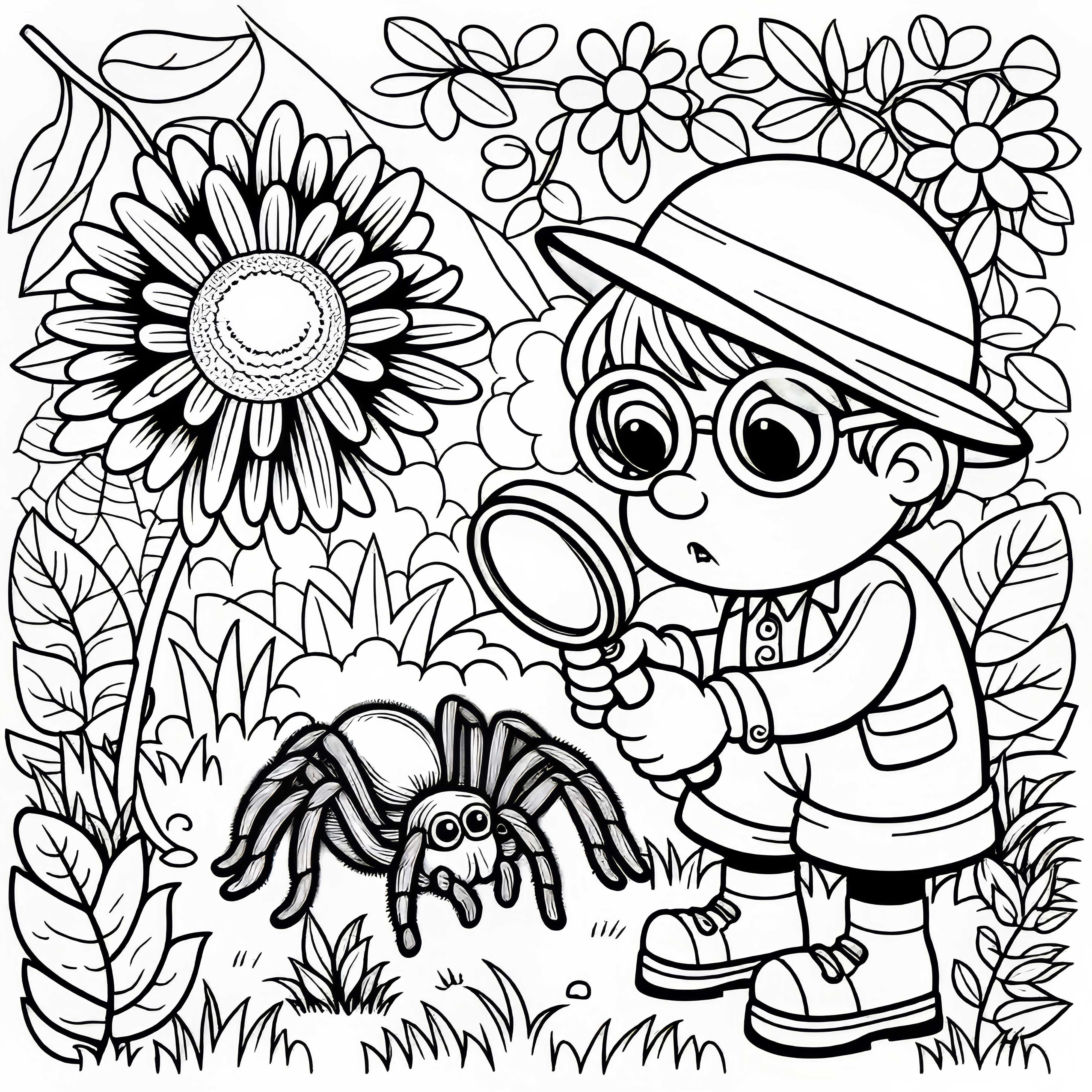 Šťastný pavúk na ihrisku v karikatúrneom štýle: Obrázok na vyfarbenie na stiahnutie (Zadarmo)
