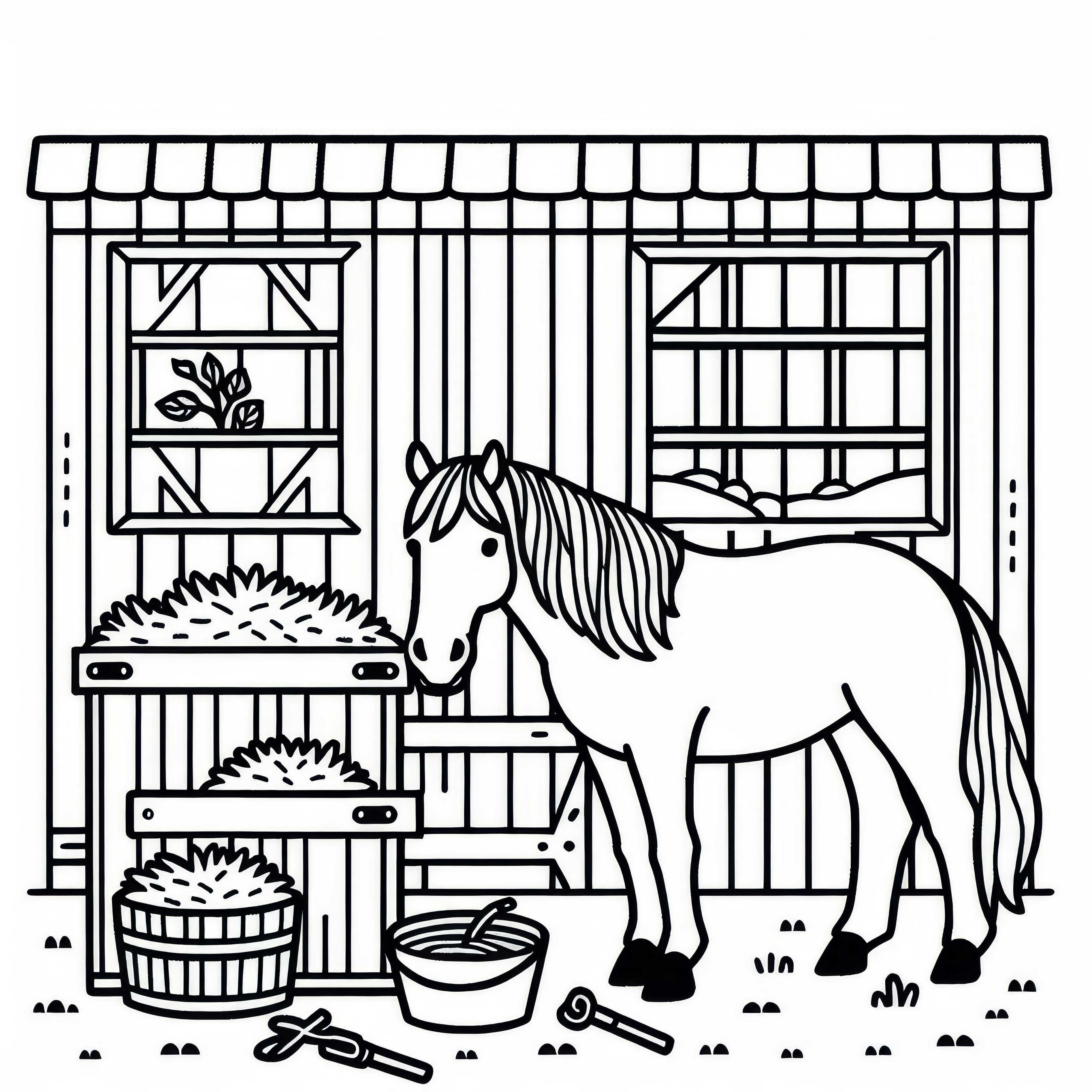 Kôň u veterinára - obrázok na vyfarbenie na bezplatné stiahnutie