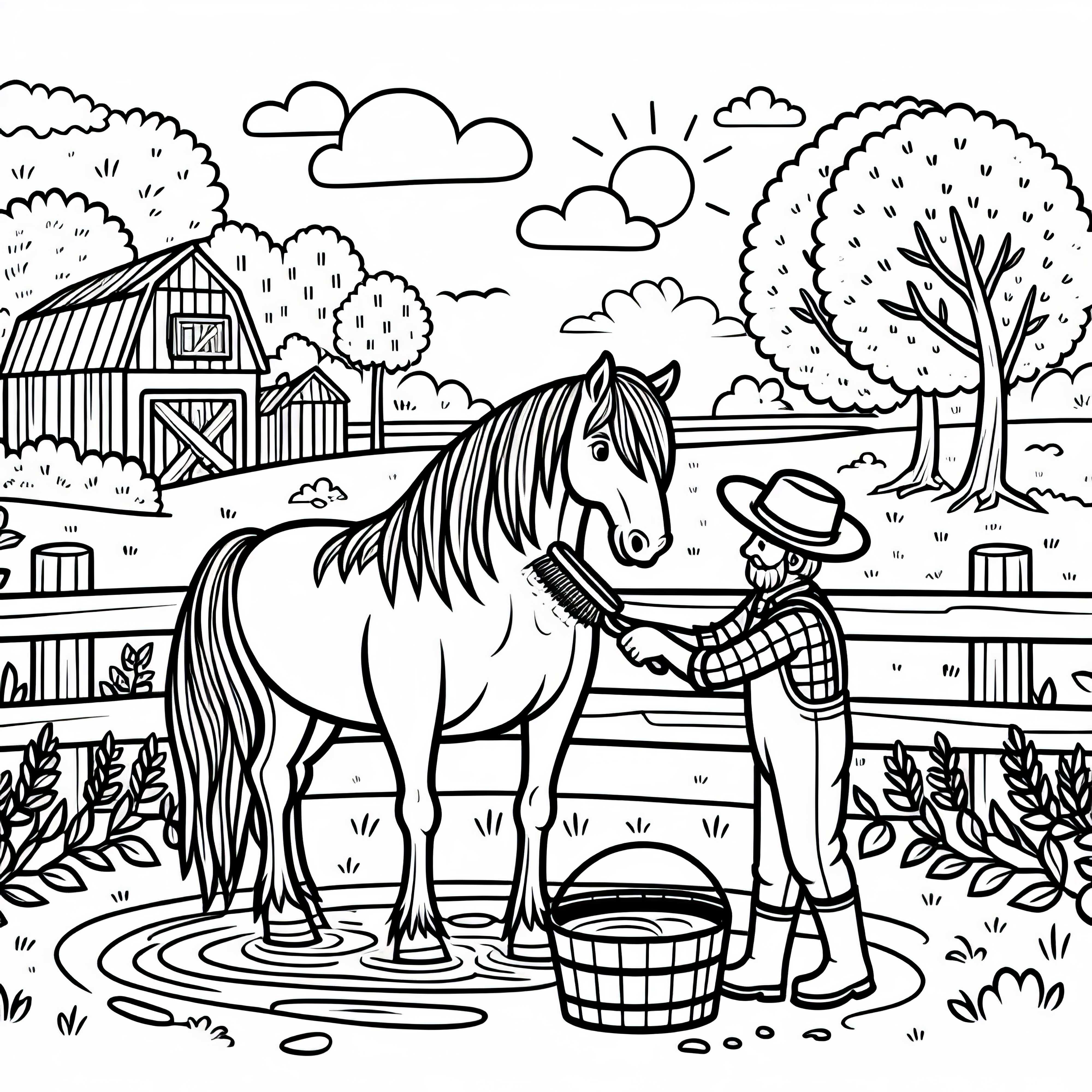 Kôň u veterinára - obrázok na vyfarbenie na bezplatné stiahnutie