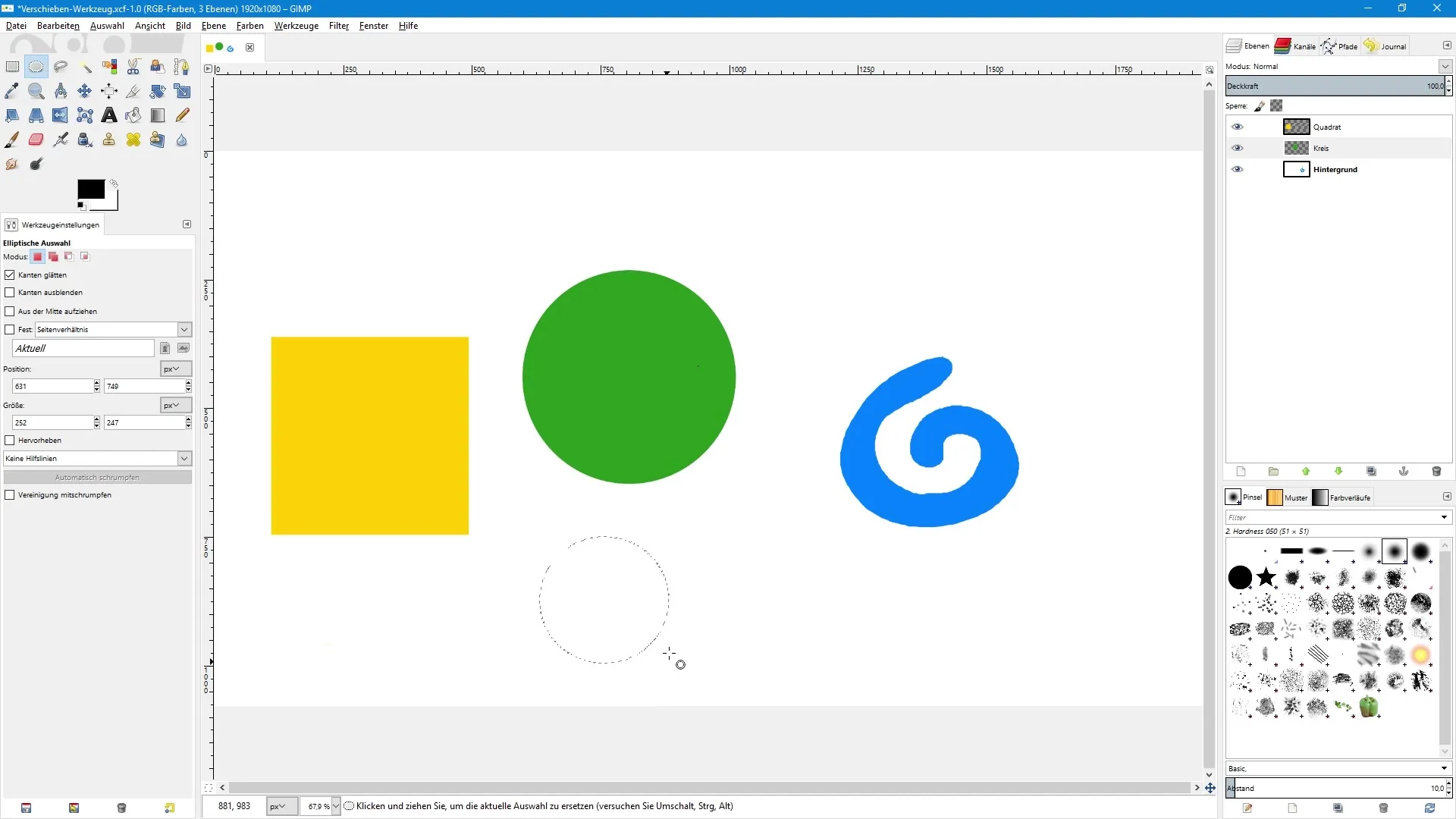 Nástroj na presúvanie môžeš tiež použiť na presúvanie výberov v obrázku. Najprv vytvor výber s elipsoidným výberovým nástrojom. Potom jednoducho klikni na výber a potiahni ho na požadovanú pozíciu.