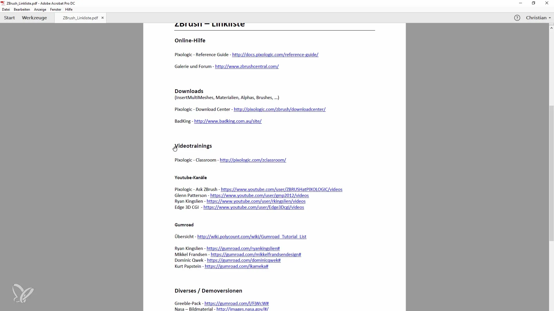 Aby ste mali jednoduchší prístup k ZBrush a rôznym vzdelávacím materiálom, nasleduje podrobný postupný sprievodca.
