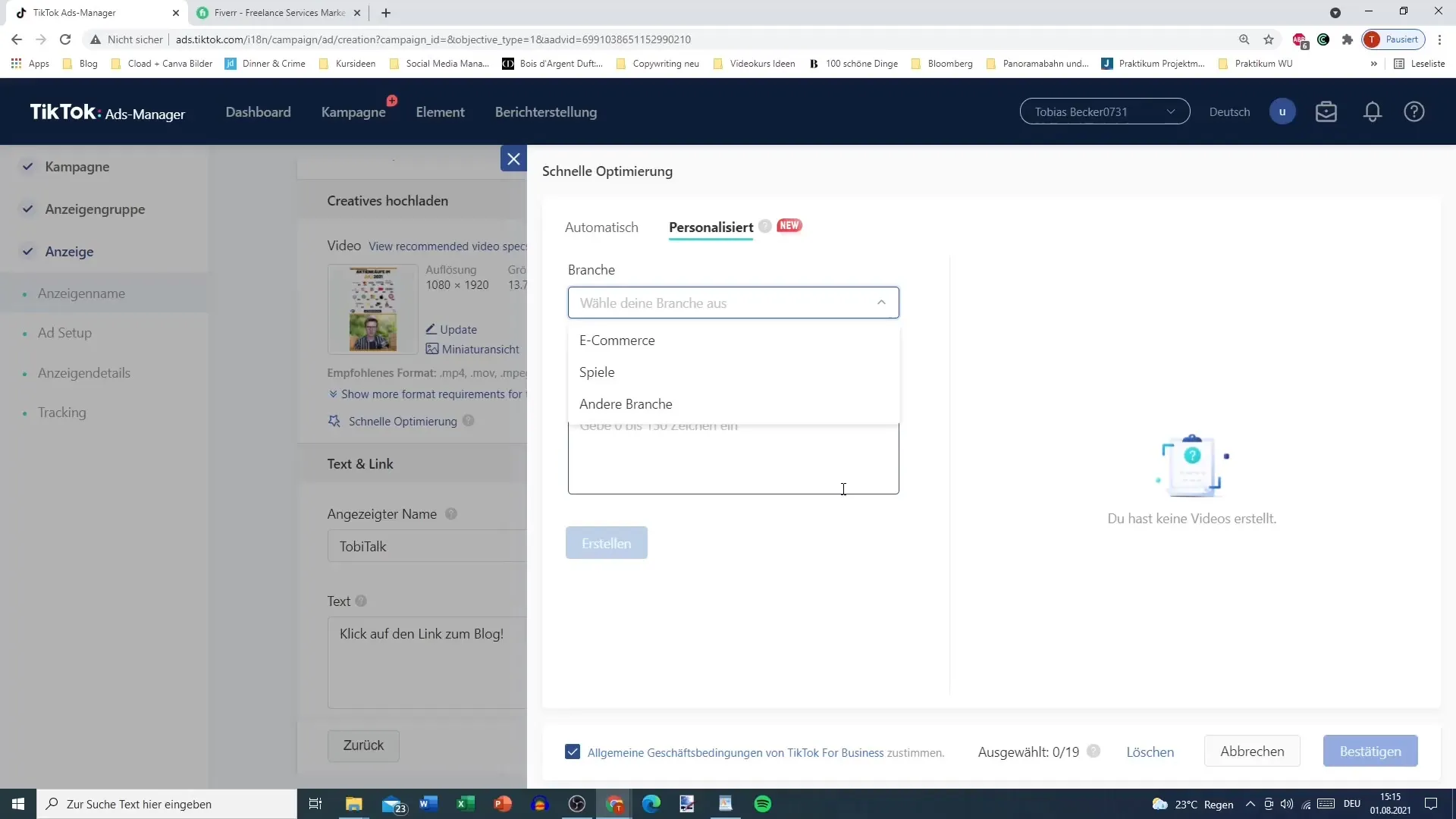 Ak sa rozhodneš pre personalizovanú optimalizáciu, musíš najskôr vybrať vhodné odvetvie. Možnosti ako E-Commerce alebo Hry sú dostupné, a je dôlezité vybrať správne odvetvie pre zaručenie efektivity svojich reklám.