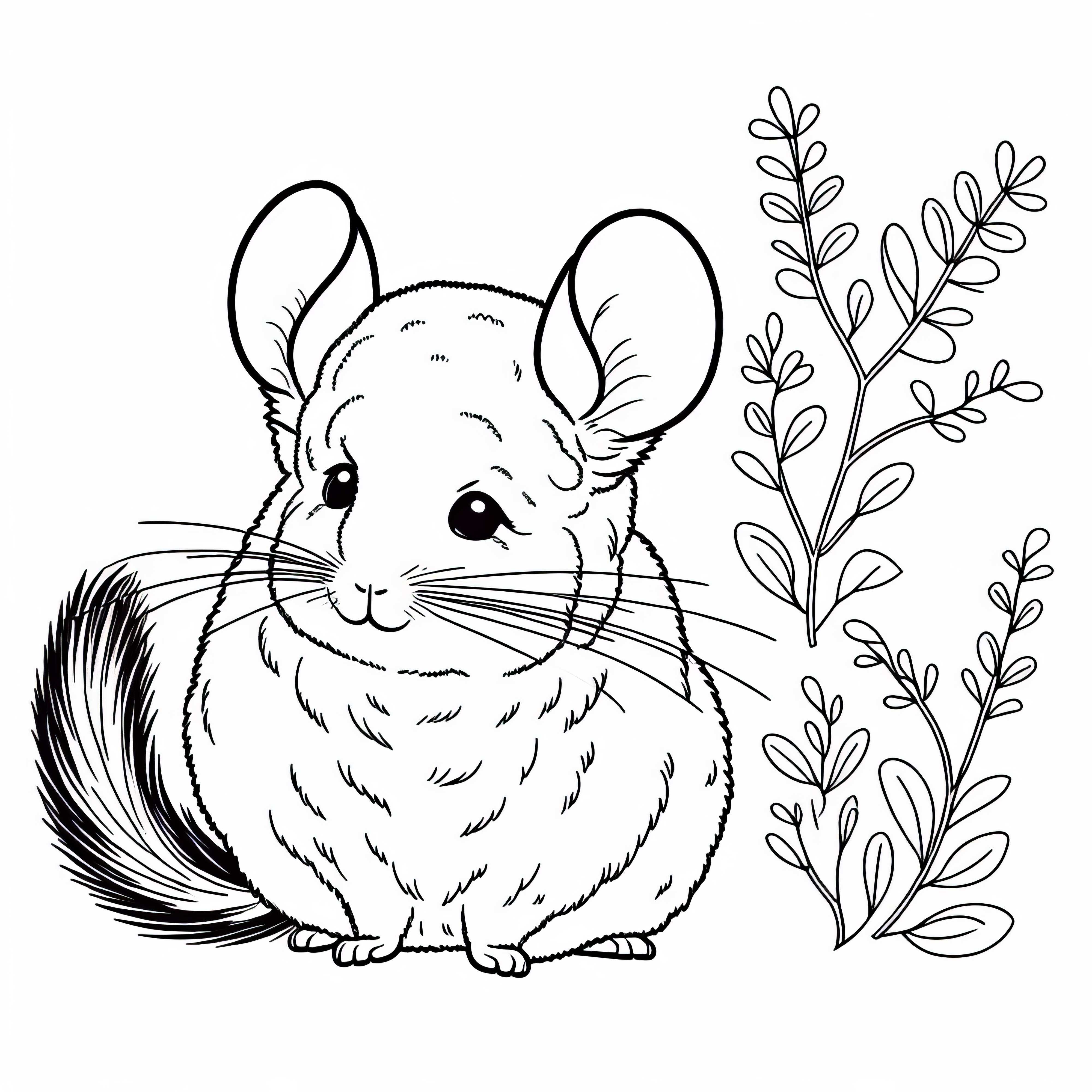 Chinchilla stoji na zadnjih nogah in grize vejo - slika za barvanje brezplačno