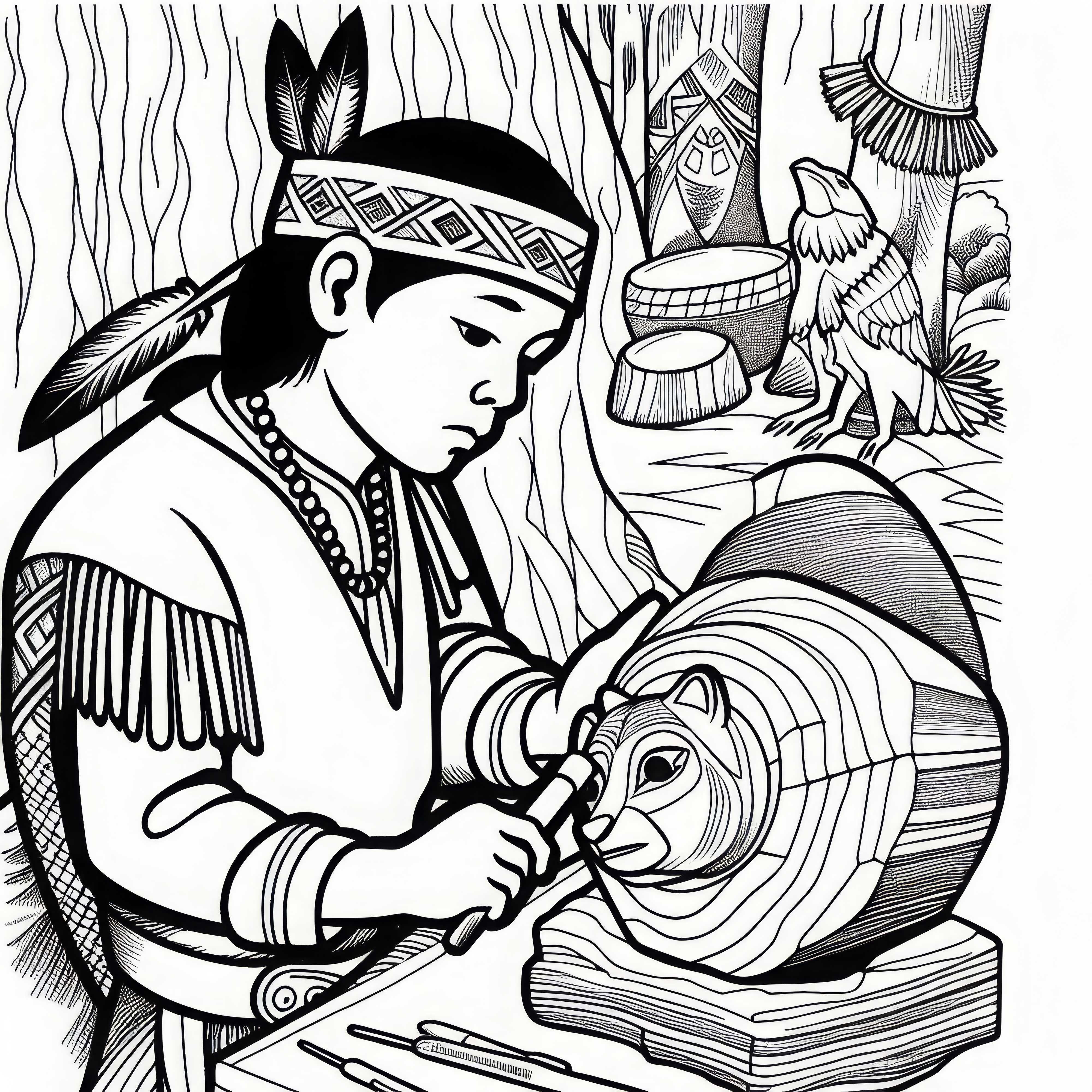 Dva otroka igrata na malih ročnih bobnih iz živalske kože - pobarvanka Indijanca brezplačno
