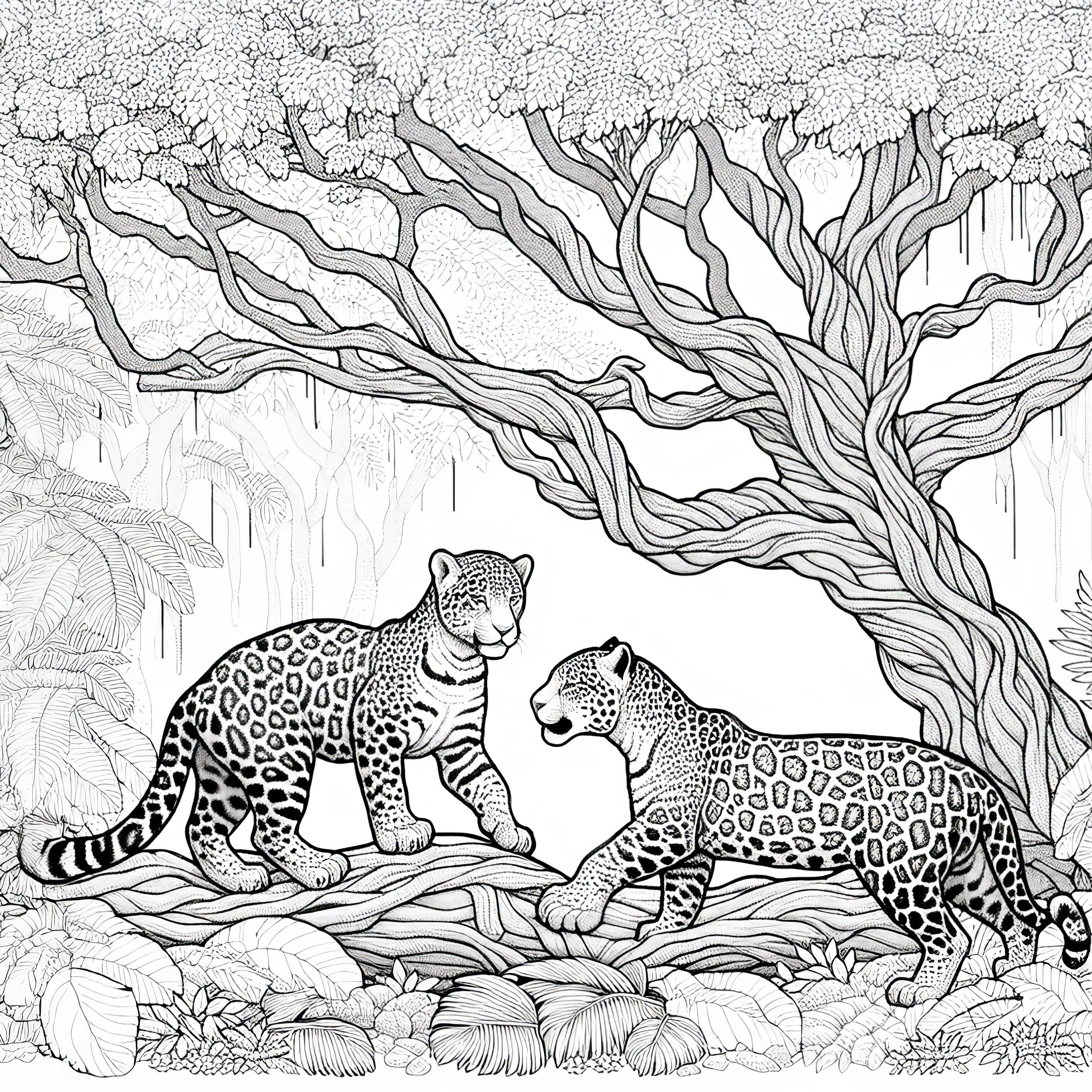 Jaguari se igrajo med seboj: Brezplačna barvna predloga