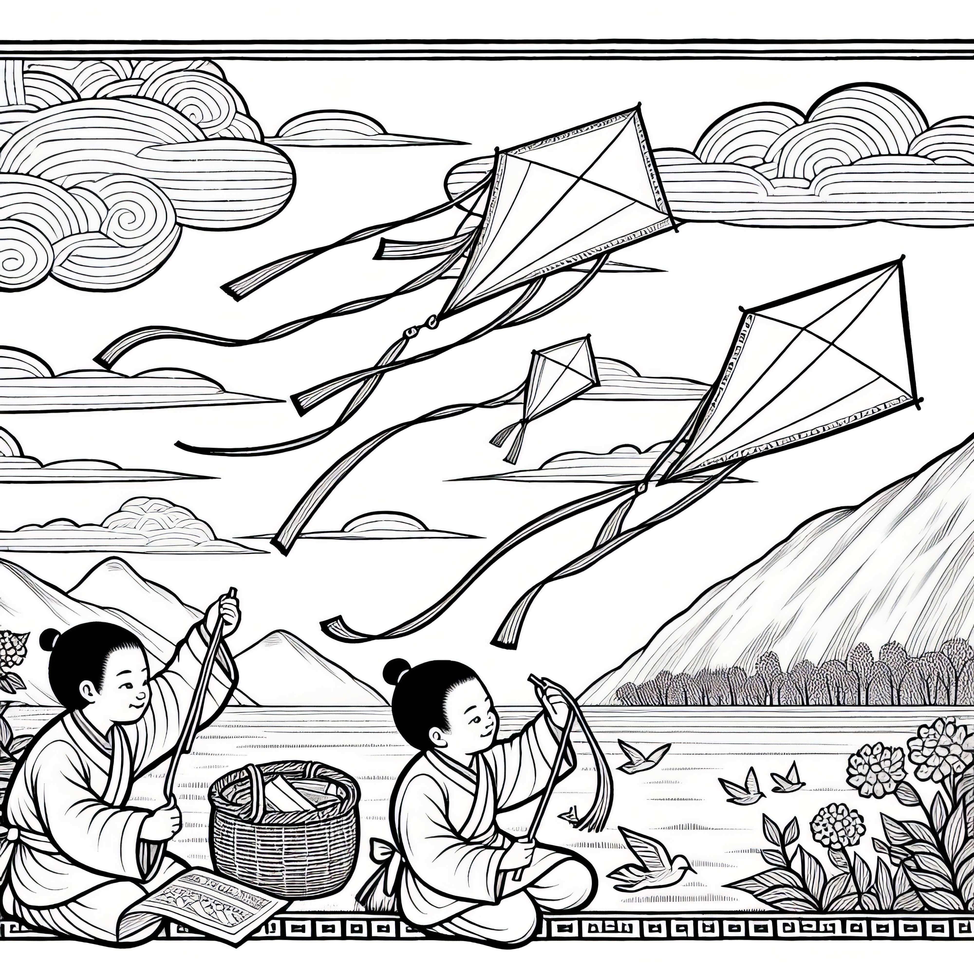 På denna målarbild syns barn som glatt flyger pappersdraakar. Scenen utspelar sig i det gamla Kina och förmedlar en bit av landets kultur och tradition. Bilden passar utmärkt för utskrift och måları. Du kan enkelt ladda ner den gratis. Dessutom finns det möjlighet att måla bilden online. Ladda ner målarbilden nu och upptäck glädjen i att måla!