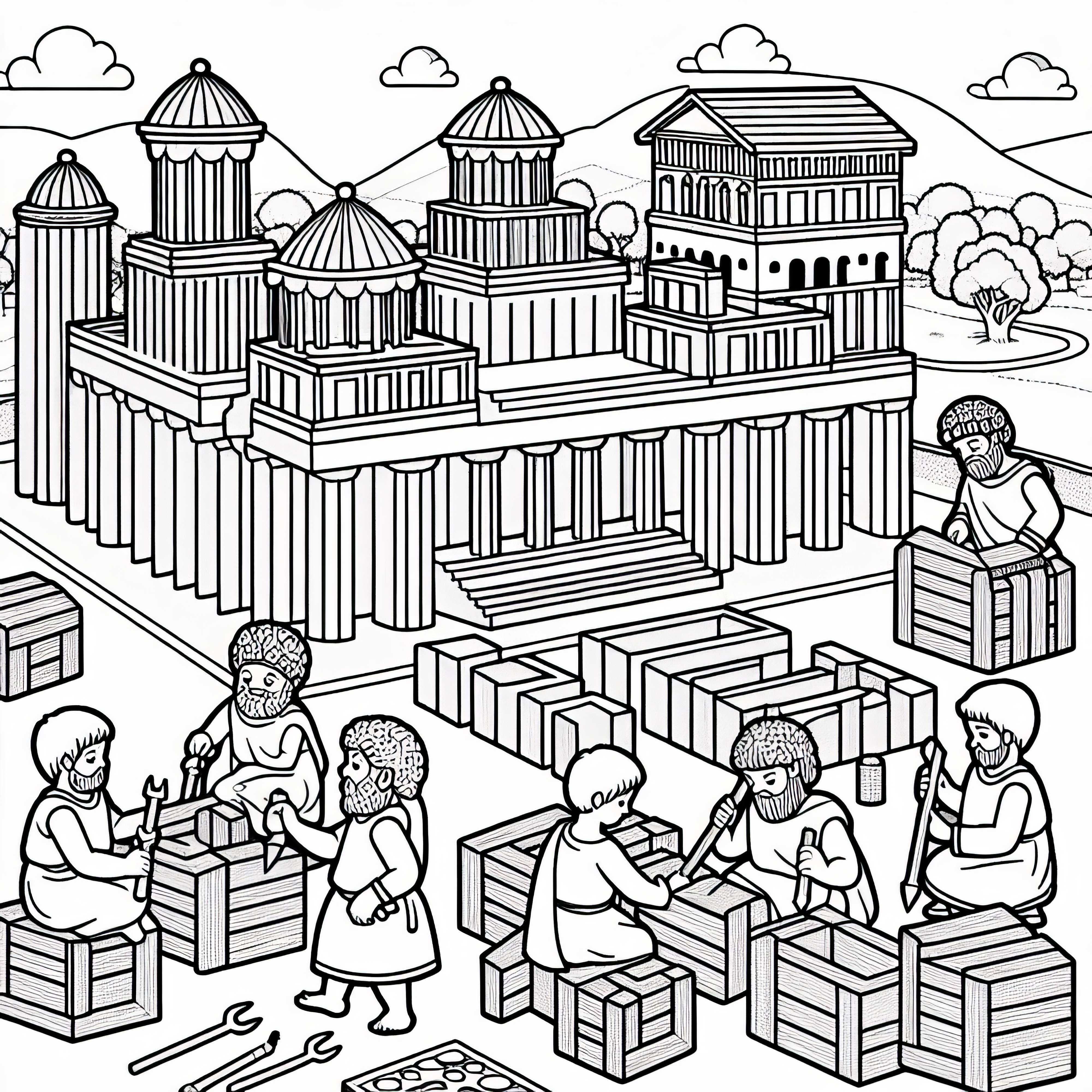 Den trojanska hästen byggs – Gratis målarbild Iliaden