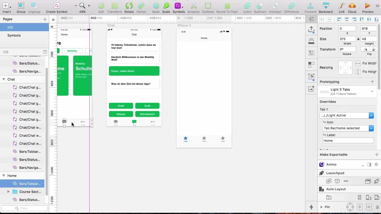 För flikfältet gäller samma sak: Välj en version med tre flikar från iOS 11-biblioteket och se till att den är 83 pixlar hög så att den passar bra i layouten.