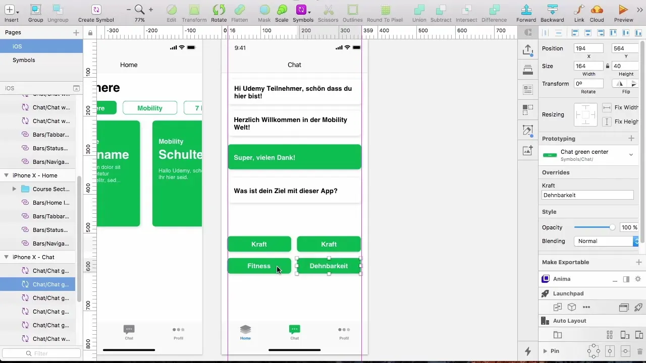 Observera mellanrummen, särskilt mellan chattbubblor och flikfältet. Håll ett avstånd på 16 pixlar för att säkerställa att elementen harmonierar bra med varandra.