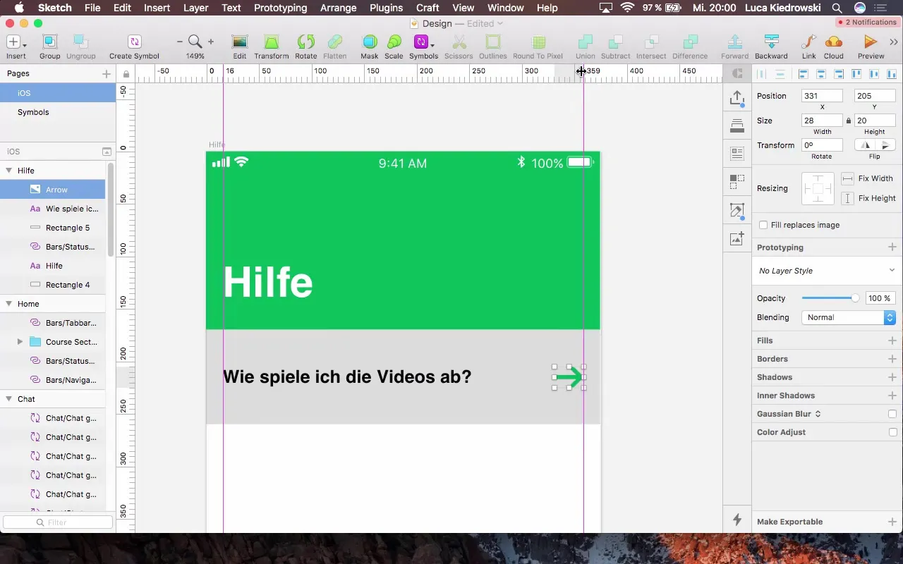 Markera alla komponenter som du vill lägga till i Collection View, och skapa en symbol med namnet "help sell". Denna struktur gör det lättare för utvecklaren att implementera FAQ-sektionerna i appen.