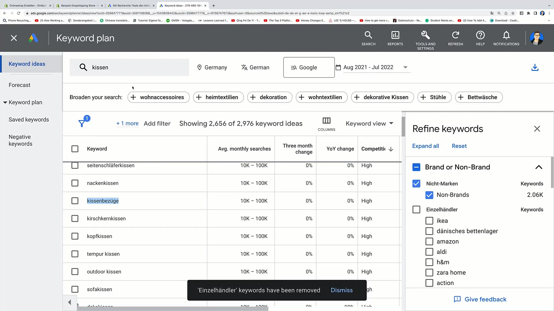 Se till att välja nonbranded nyckelord. Det innebär att dessa nyckelord inte är kopplade till ett varumärkesnamn, som till exempel "Ikea kudde". För att filtrera detta, gå till alternativen för att visa endast nonbranded nyckelord.