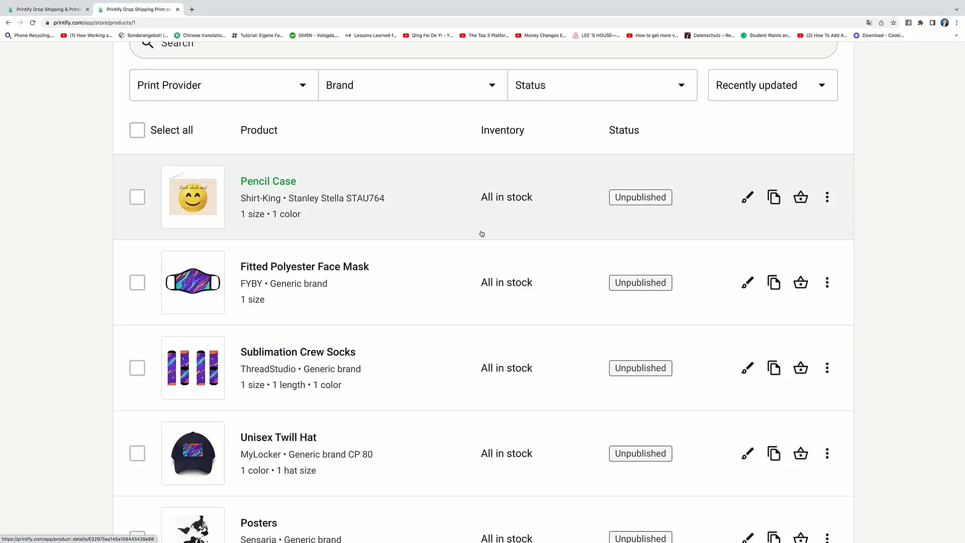 Klart. Nu har din design sparats framgångsrikt i ditt Printify-konto och du kan se pennfodralet med samarbetsnumret och annan relevant information. Om du vill kan du fortsätta att redigera, duplicera eller ta bort produkten.