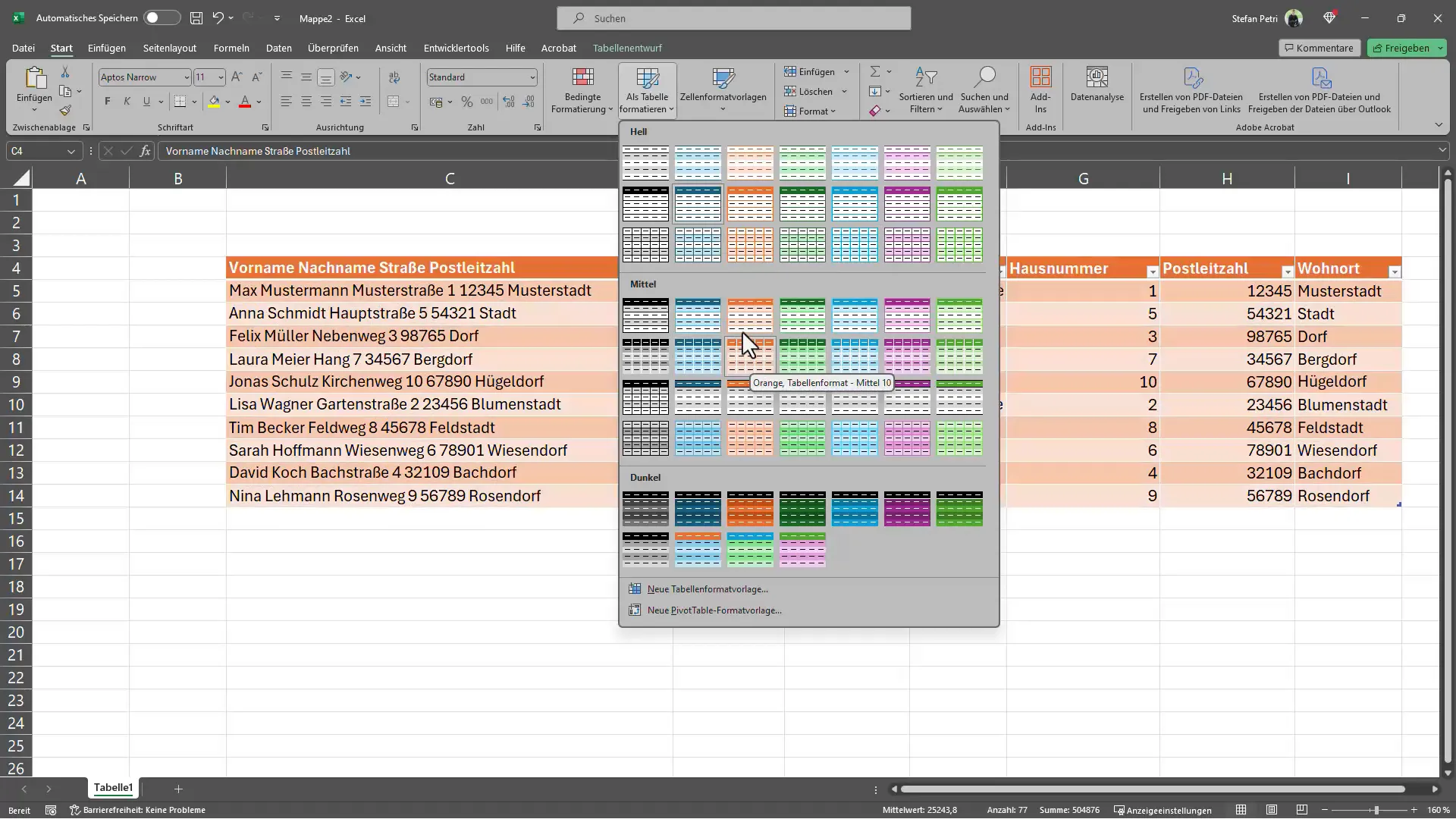 Veriler başarılı bir şekilde çıkarıldığında, okunabilirliği artırmak için onları biçimlendirebilirsiniz. Yeni tabloyu seçin ve "Başlangıç" sekmesine gidin. Burada, satırlar için alternatif renk düzeni eklemek veya bir tablo oluşturmak da dahil olmak üzere çeşitli biçimlendirme seçeneklerini deneyebilirsiniz. Bu görsel ayarlamalar, verilerin daha anlaşılır bir şekilde sunulmasına yardımcı olur.