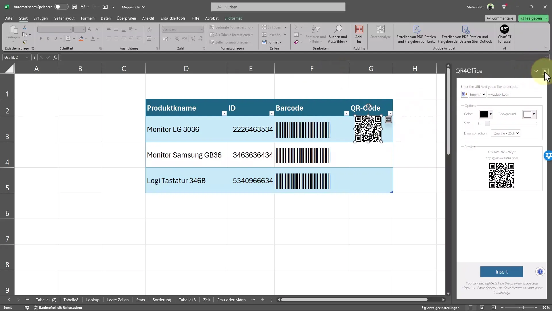 Günümüzde, Barkodlar ve QR Kodları, depo yönetiminden pazarlamaya kadar çeşitli sektörlerde çok çeşitli uygulamalar bulan önemli araçlar haline gelmiştir. Bu kılavuzda, Excel üzerinde nasıl kolay ve hızlı bir şekilde Barkodlar ve QR Kodları oluşturabileceğinizi göstereceğim. Bu kılavuz, sadece Excel'e yeni başlayanlar için değil, aynı zamanda bilgilerini genişletmek isteyen ileri düzeydeki kullanıcılar içindir. Hadi hemen başlayalım!