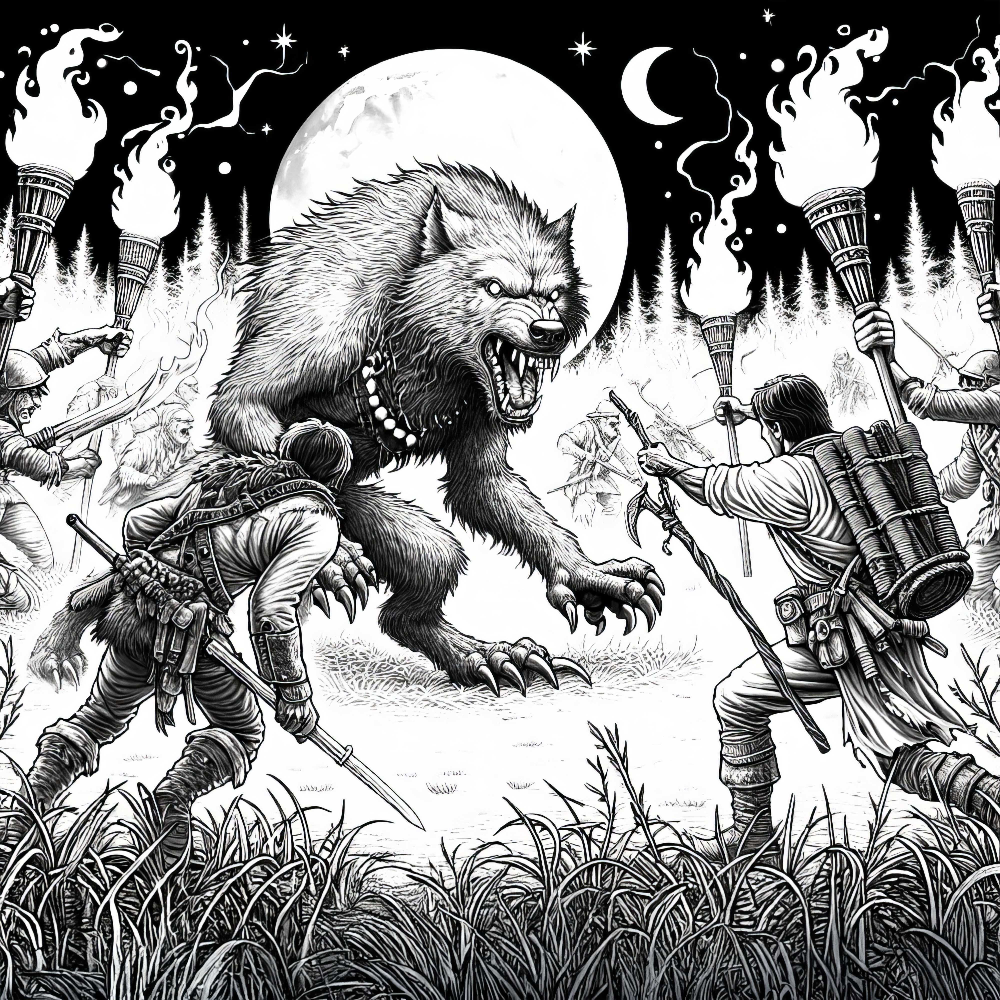 Kurt adam, dolunayda kızgın bir uluma ile dönüşür, boyama resmi (Ücretsiz)