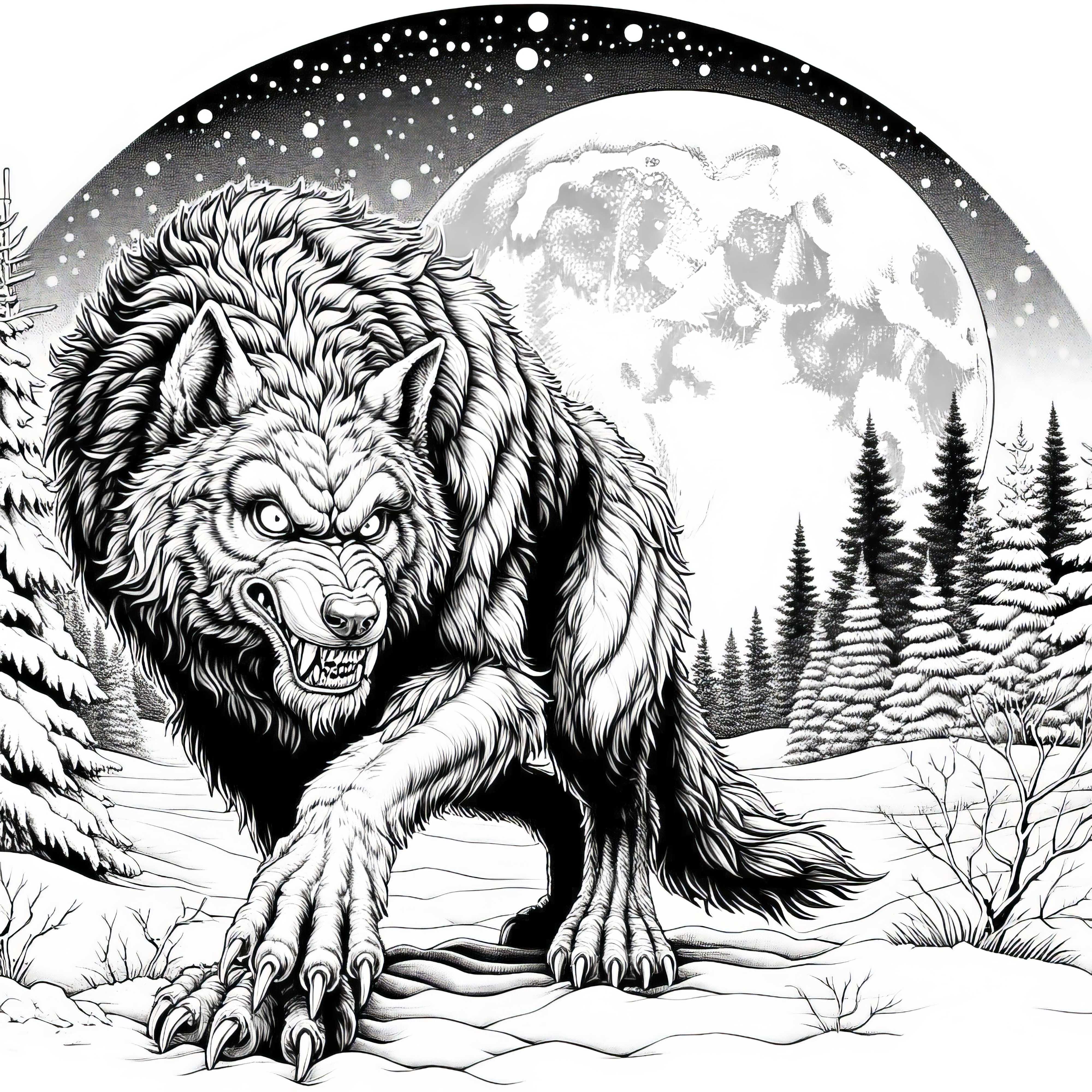 Kurt adam, dolunayda kızgın bir uluma ile dönüşür, boyama resmi (Ücretsiz)