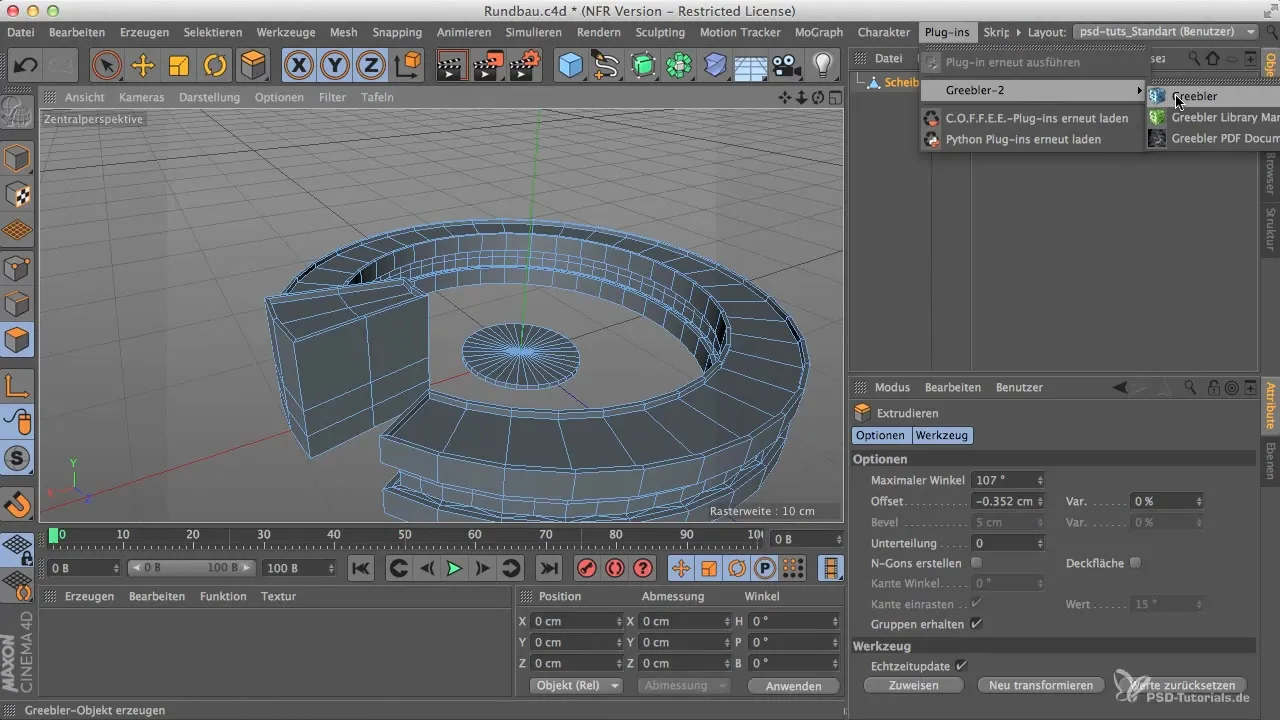 Якщо твій об'єкт поділений, пора додати Greebles. Перейди до плагінів і вибери інструмент Greebles. Помісти свою будівлю в плагін Greebles, щоб згенерувати Greebles.