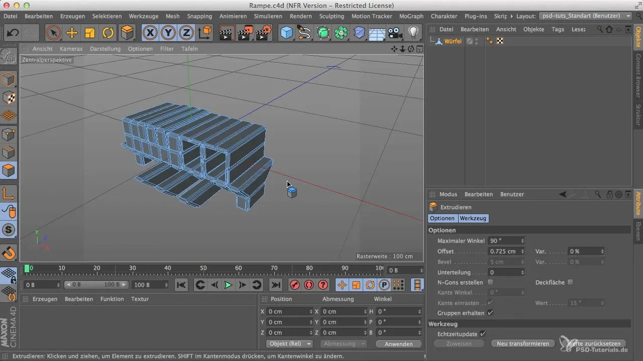 Спочатку вибери об'єкт куба як вихідну точку для твоєї будівлі. Ти можеш налаштувати розміри так, щоб вони відповідали твоїм вимогам. Наприклад, ти можеш встановити висоту 80 см, ширину 30 см і глибину 40 см, щоб створити цікаві пропорції. Ці специфікації допоможуть тобі досягти гармонійної інтеграції в існуюче місто.