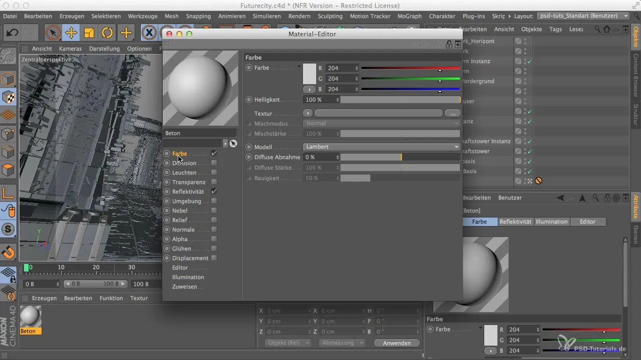 По-перше, тут ви можете побачити так зване Місто Майбутнього, яке вже включає в себе кілька вражаючих будівель. Щоб завершити загальну картину, важливо створити відповідний матеріал. У цьому уроці я покажу вам процес створення привабливого матеріалу для різноманітних будівель.