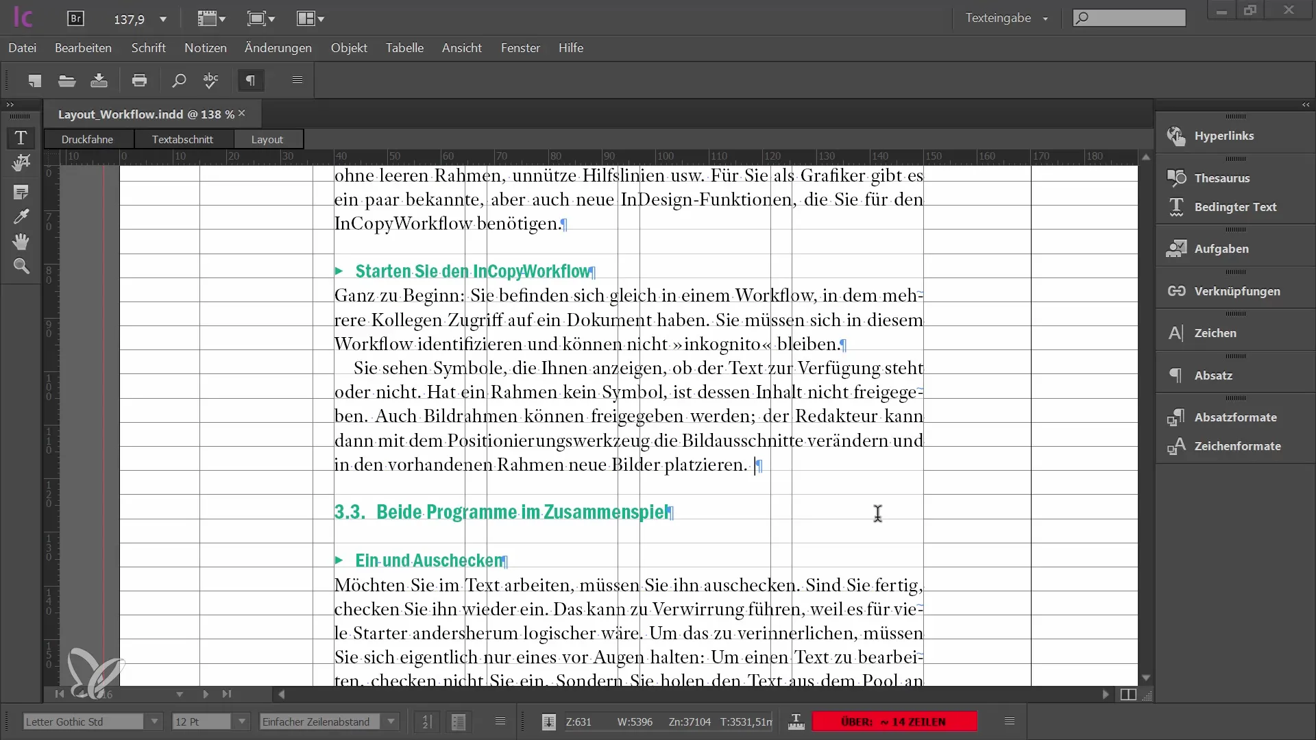 Якщо ви під час редагування зробите помилку або хочете щось скасувати, ви можете зробити це за допомогою функції Скасувати. Гаряча клавіша для цього - STRG + Z. Будьте уважні, щоб не змінювати формат абзацу без попередньої консультації з графіком, оскільки це може вплинути на дизайн.