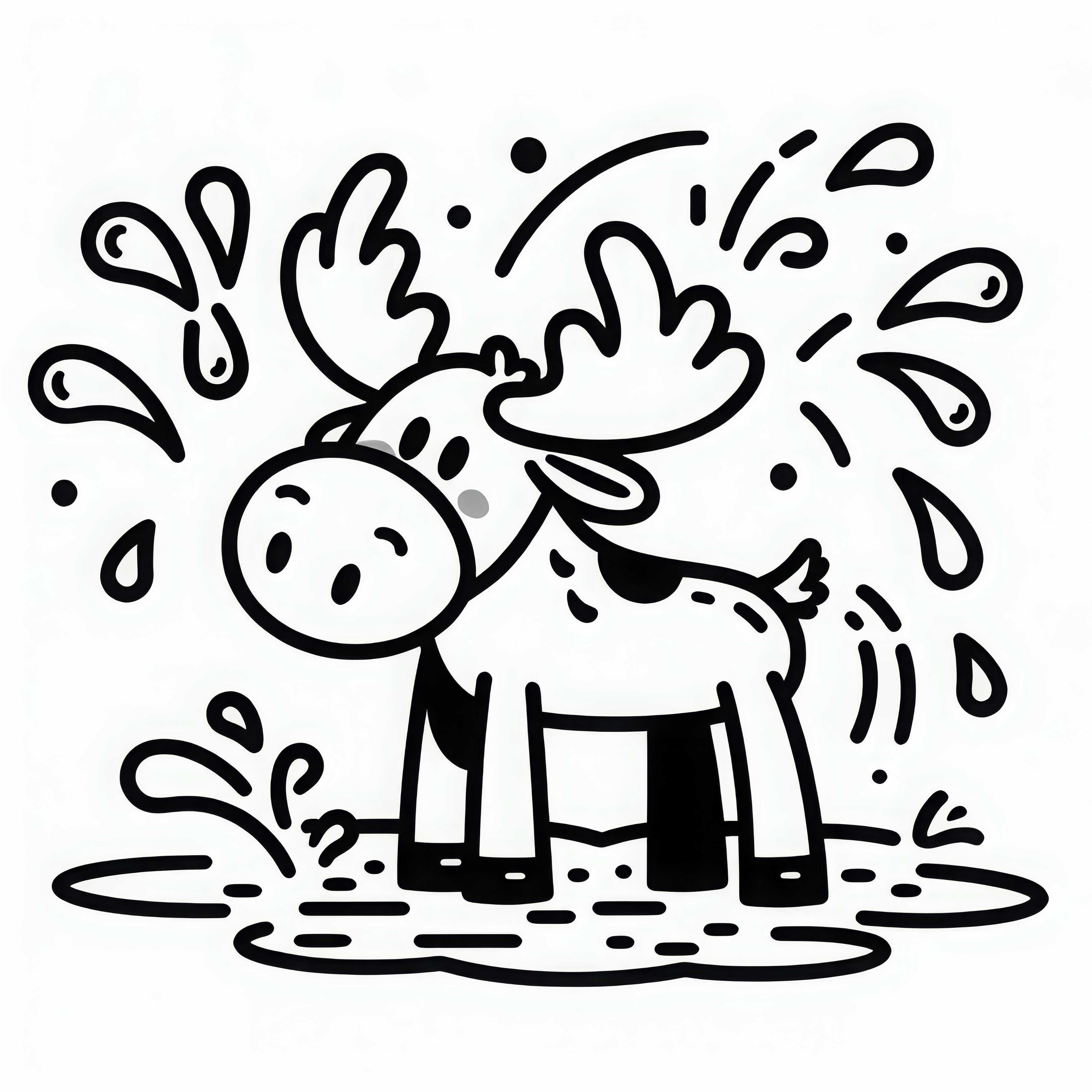 Лось трясе головою і дозволяє краплям води з рогів бризкати – розмальовка проста