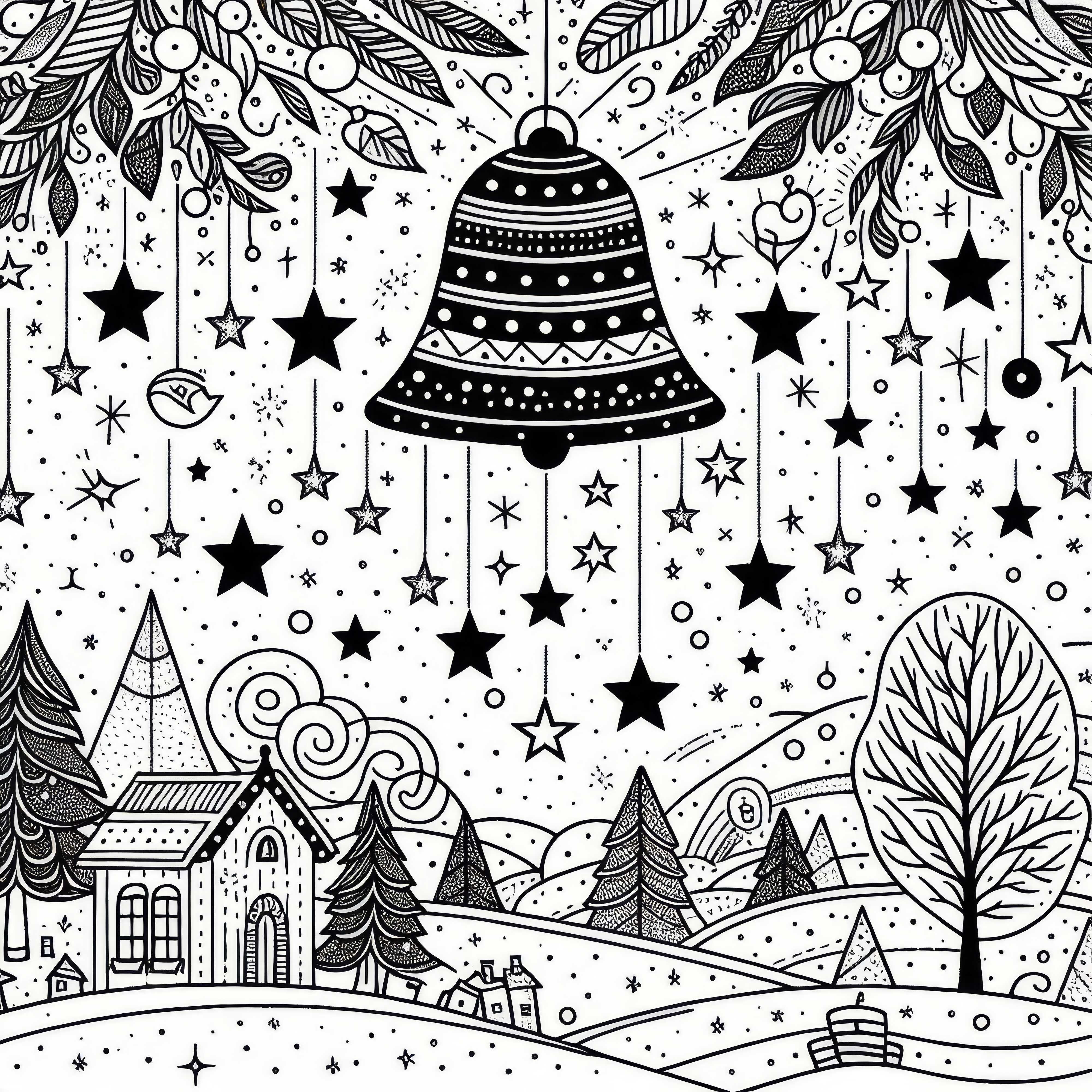 Різдвяне село з маленькими хатинками – малюнок для розфарбовування на 22 грудня