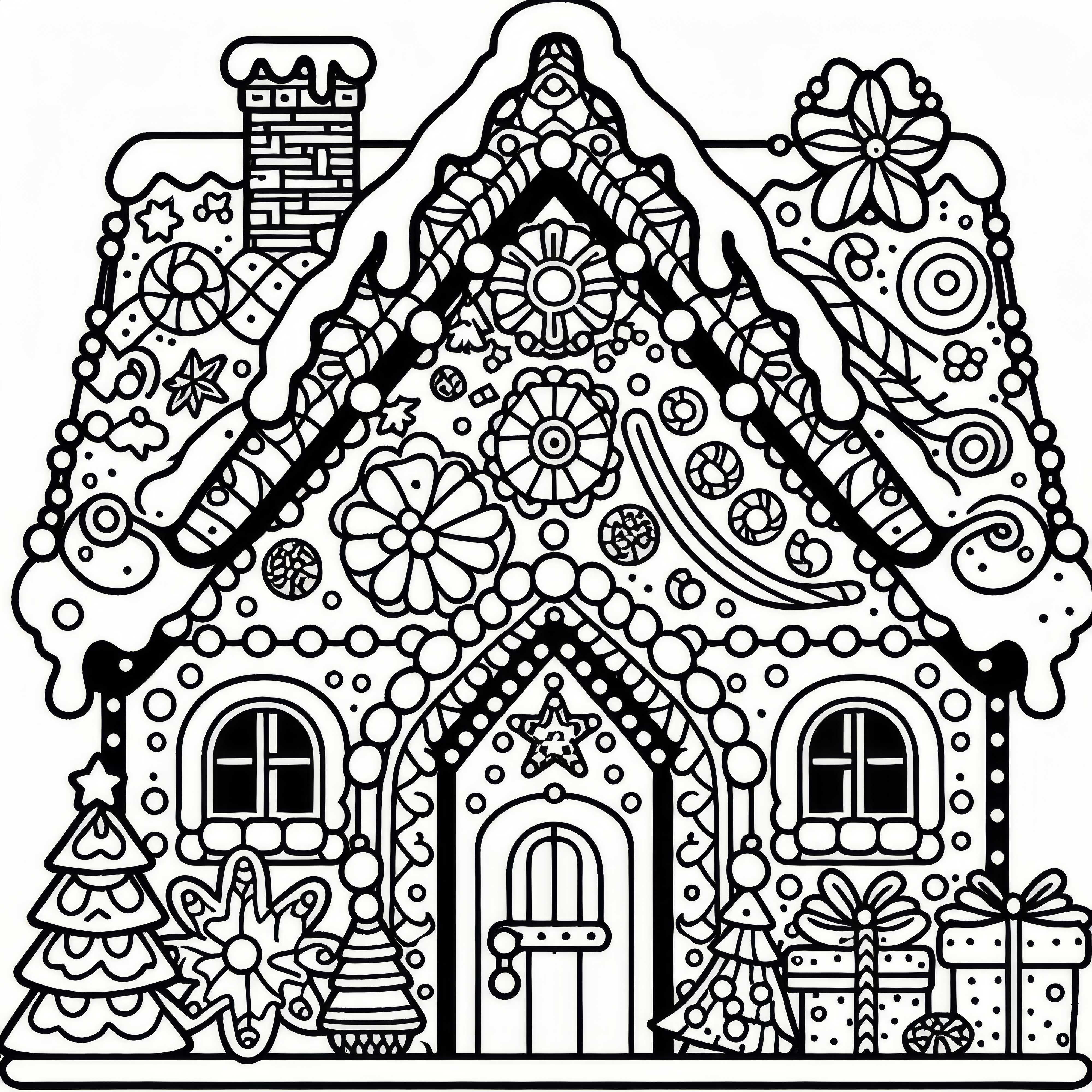 Різдвяне село з маленькими хатинками – малюнок для розфарбовування на 22 грудня